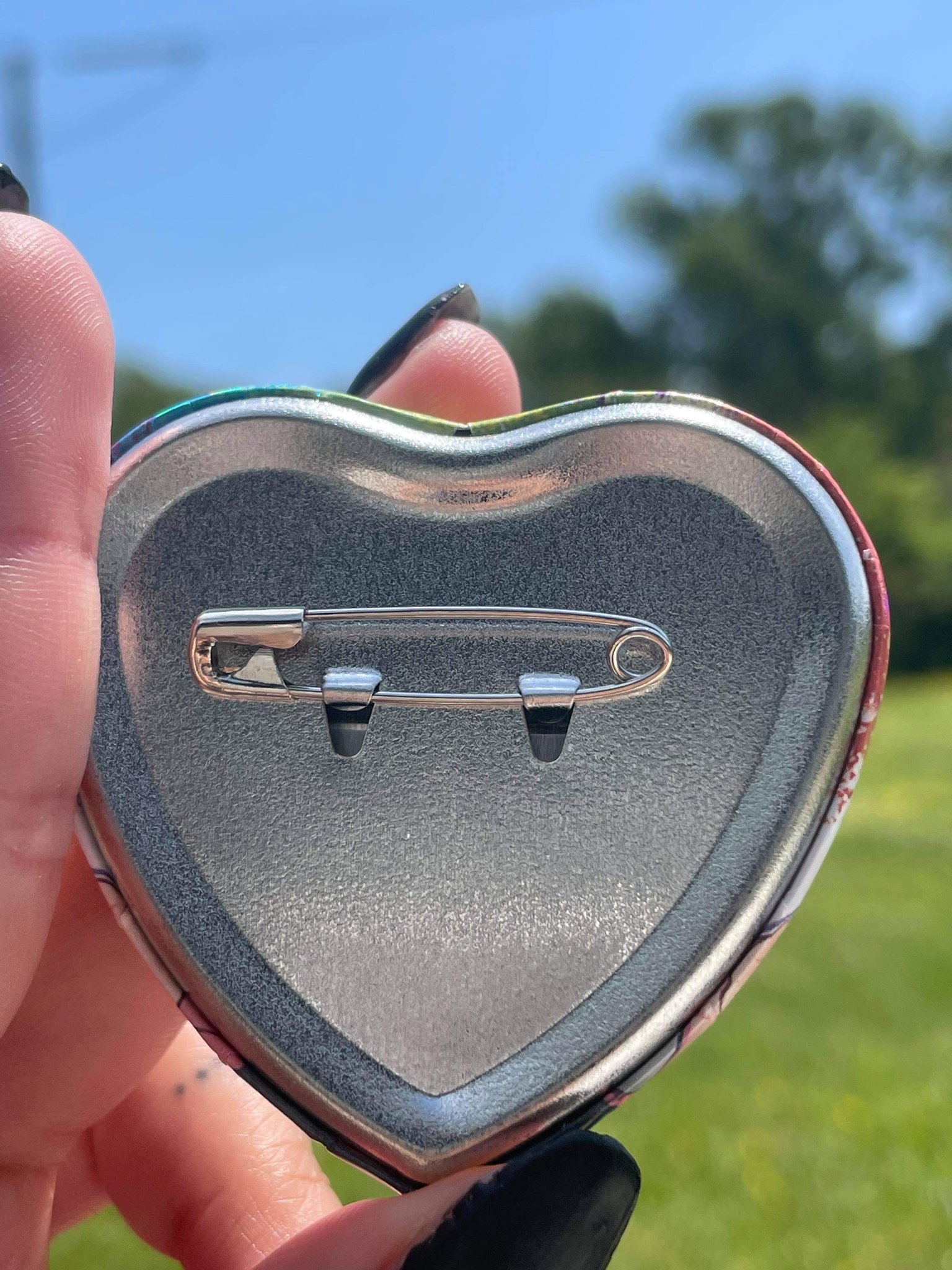 Werewolf Shiro rocking a Pride Voltron sleeveless hoodie! This Heart Shaped button is 2" and has a shattered glass holo effect!